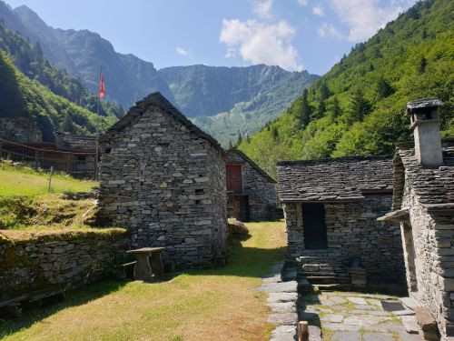 Auf den Spuren früherer Wildheuer zu einem aktiven Bergbauernhof im Valle Verzasca